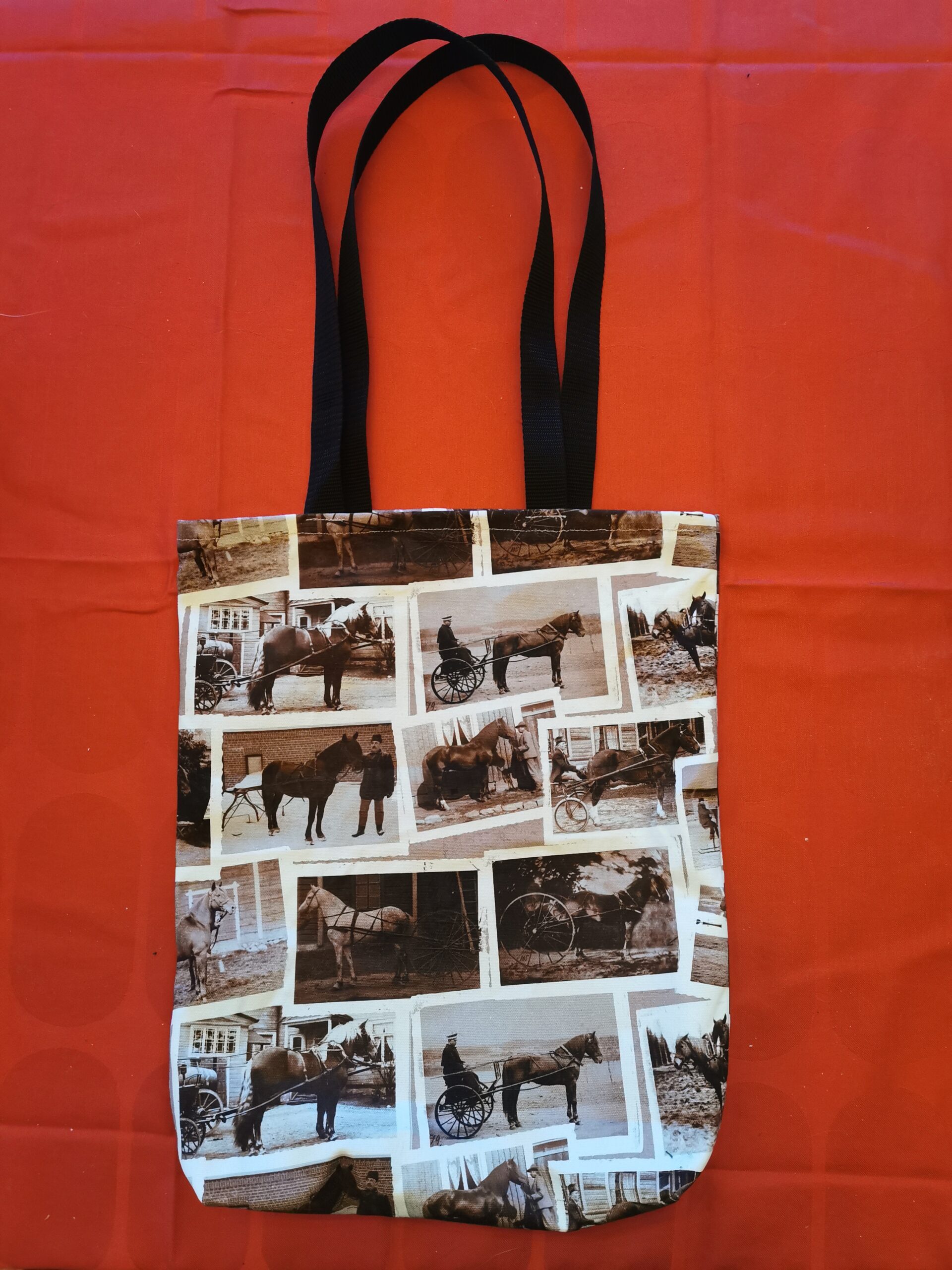 Yksinkertainen kangaskassi, ”apukassi”, kangas tukevaa 100 % puuvillaa. Koko 33 x 38 x 10 cm.